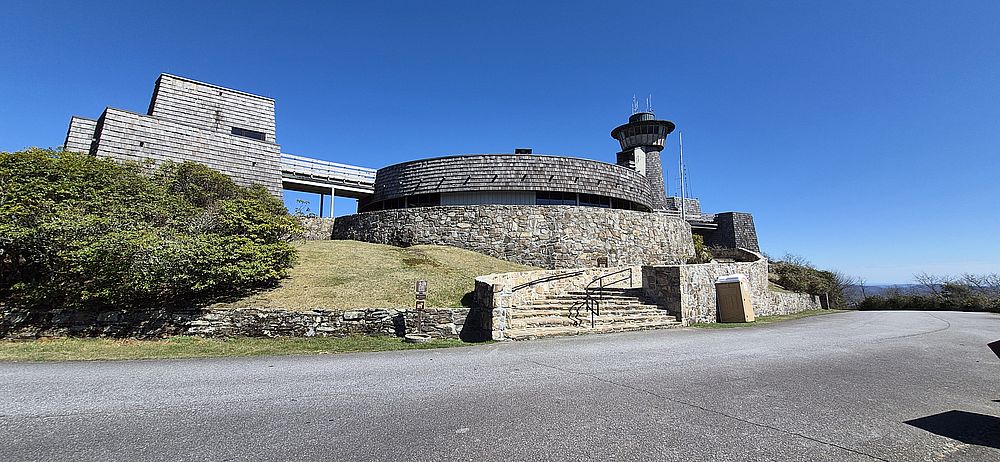 Das am Gipfel erbaute Besucherzentrum ist zwar ebenfalls geschlossen, ermöglicht aber aufgrund der großzügigen Bauweise mit Besucherterassen einen ungehinderten 360° Rundblick über die südlichen Appalachen, dessen Gipfel hier etwa 750 m über die umliegendeen Täler aufragen. Tatsächlich ist in einer betonierten Ecke des Besucherzentrums auch das offizielle Vermessungszeichen dieses